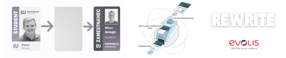 Rewrite je technológia, ktorá umožňuje vytlačiť údaje na prepisovateľnú (rewritable) kartu, následne ich vymazať a kartu znova potlačiť – opakovane. Je ideálna na dočasné preukazy a karty, ktoré sa často menia (návštevy, študenti, členstvá, vernostné body).